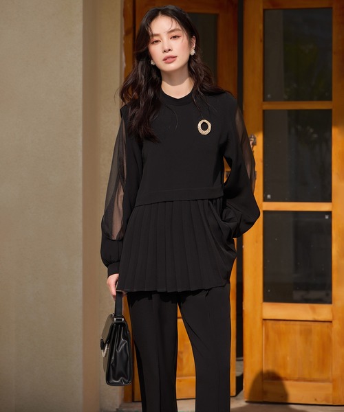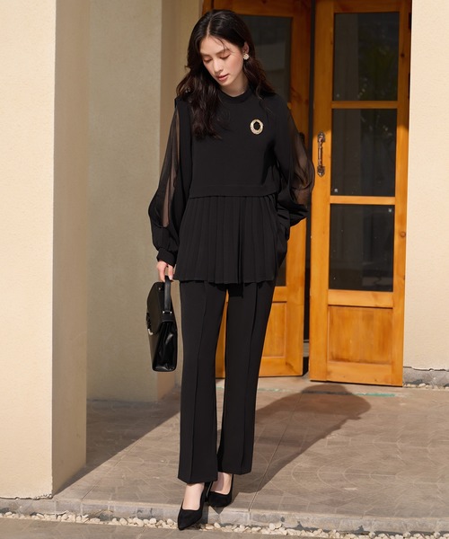 商品名:プリーツ切り替え セットアップ パンツドレス