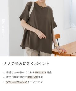 キーワード:ブラウス シャツ レディース シワになりにくい ノーカラー 半袖 無地 冷感