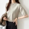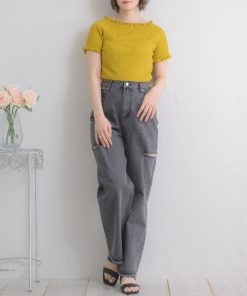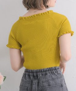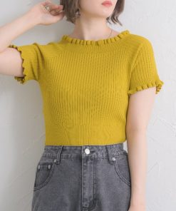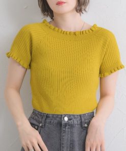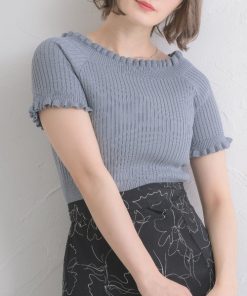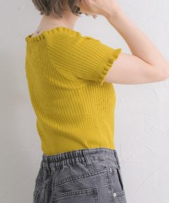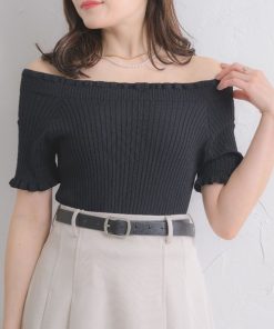 キーワード:ニット セーター レディース オフショルダー フリル 半袖 無地
