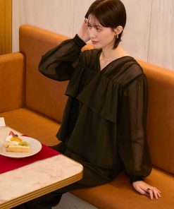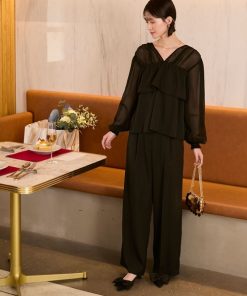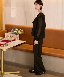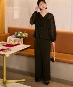 商品名:【forksy.】【オケージョン対応】シアードッキング フリルブラウス & ワイドパンツ セットアップ