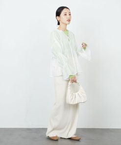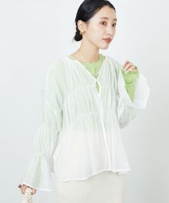 参考商品名:限定展開 ワッシャー シャーリング ベルスリーブ ブラウス