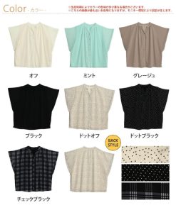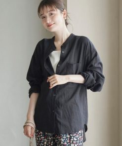 キーワード:ブラウス シャツ レディース ノーカラー 長袖 無地