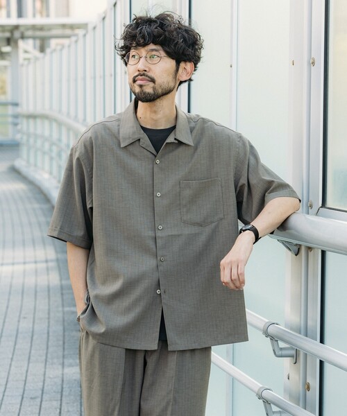 FREAK’S STORE シャツ FREAK’S STORE/フリークスストア Reflax 機能性素材 リラックスフィット ストライプ オープンカラーシャツ ショートスリーブ