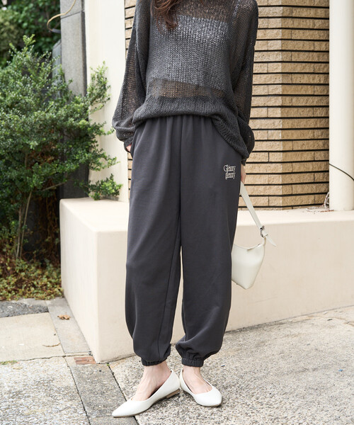 キーワード:スウェットパンツ ジャージ レディース ウエストゴム レギュラー ワンポイント 無地 WEB限定 デート ドライブ ナチュラル フェミニン 大人カジュアル 定番 冬