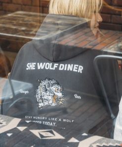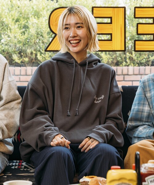 商品名:限定展開 SHE WOLF DINER×FREAK’S STORE/シーウルフダイナー 別注 ビッグシルエット バック刺繍 パーカー/WOLF