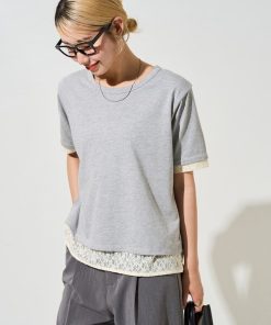 商品名:限定展開 レース 切り替え レイヤード 半袖 Tシャツ(リバーシブル)
