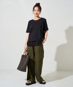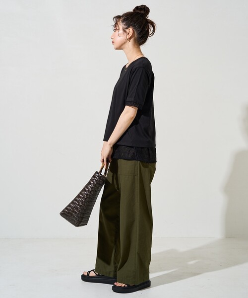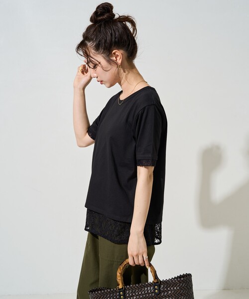 キーワード:tシャツ レディース クルーネック レース 半袖 無地 WEB限定 ナチュラル フェミニン 夏 公園 大人カジュアル 定番 旅行