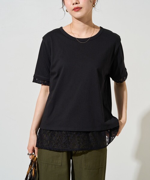 FREAK’S STORE tシャツ 限定展開 レース 切り替え レイヤード 半袖 Tシャツ(リバーシブル) レディース