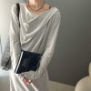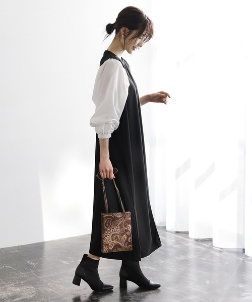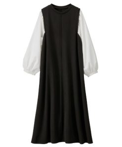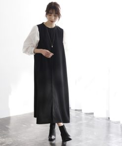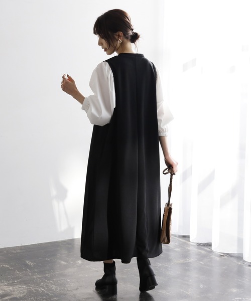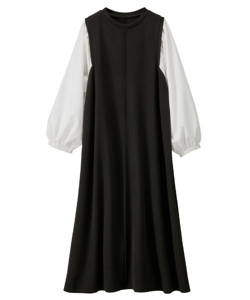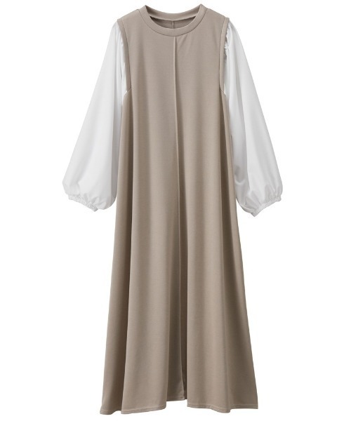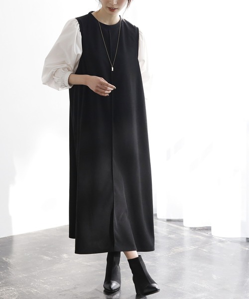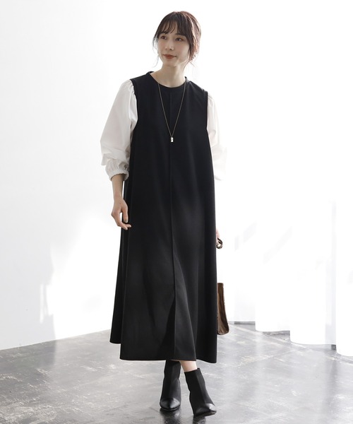 キーワード:ワンピース ミモレ丈 台形 長袖 無地