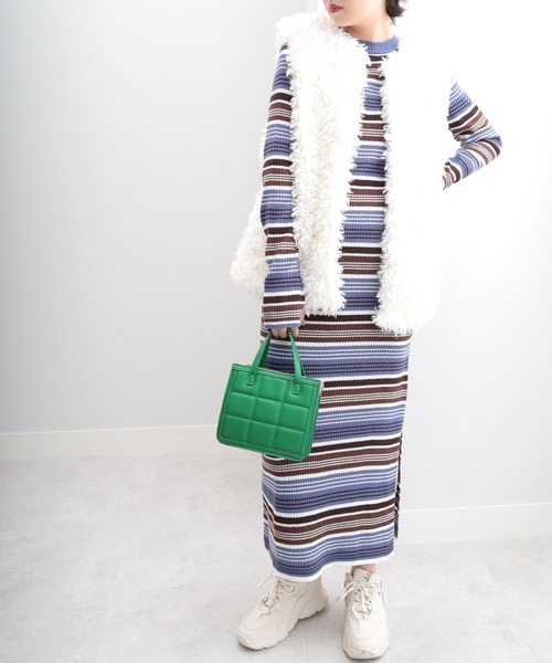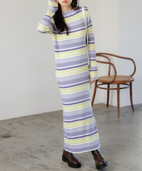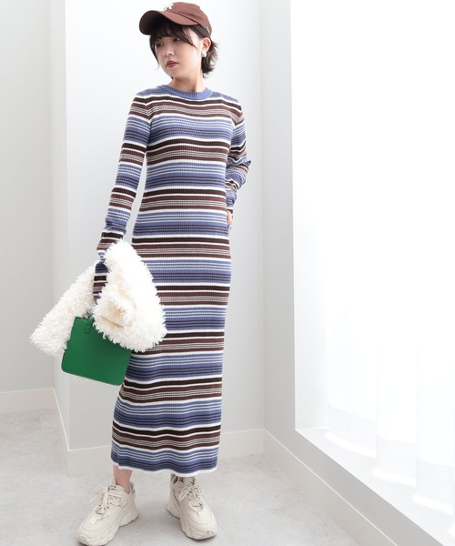 参考商品名:マルチカラーボーダーニットワンピース