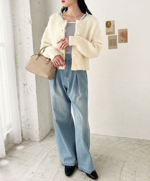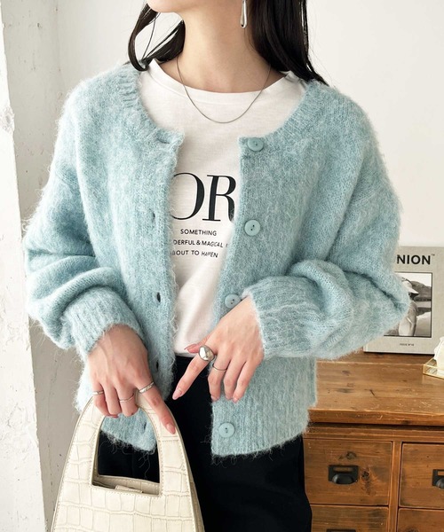 GeeRA カーディガン 前後2wayクルーネックシャギーショートカーディガン レディース