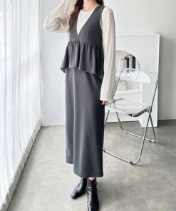 キーワード:ジャンパースカート ロング 台形 無地
