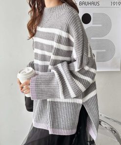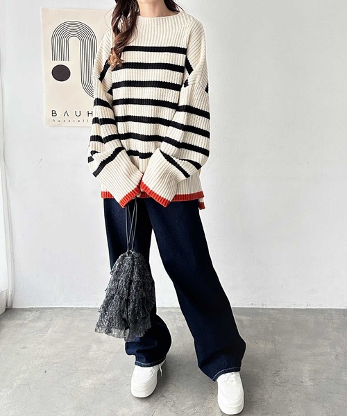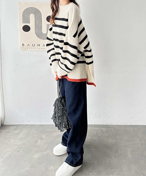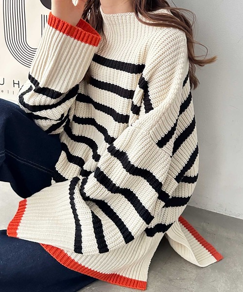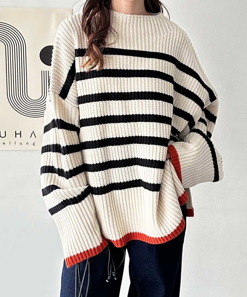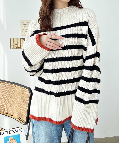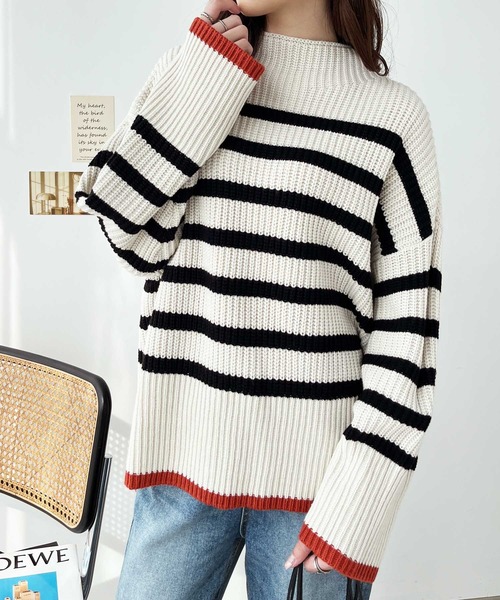 キーワード:ニット セーター レディース タートルネック ボーダー 長袖 WEB限定 大人カジュアル