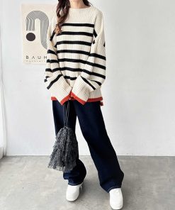 GeeRA ニット セーター ハイネック配色使いボーダーニット レディース