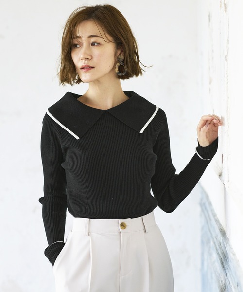 商品名:ビッグカラーデザインリブニット