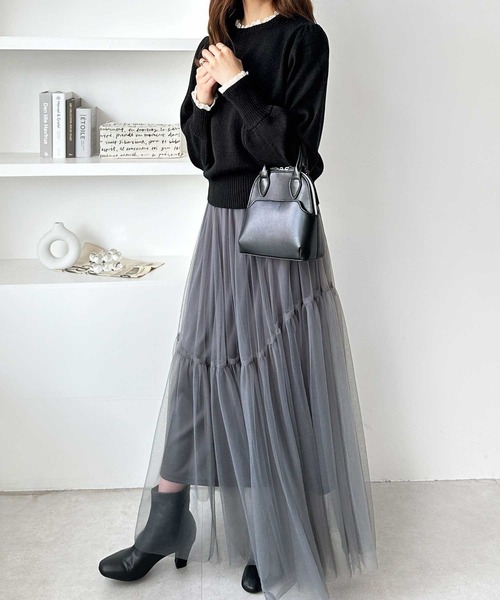 キーワード:ニット セーター レディース タートルネック フリル レース 長袖 無地