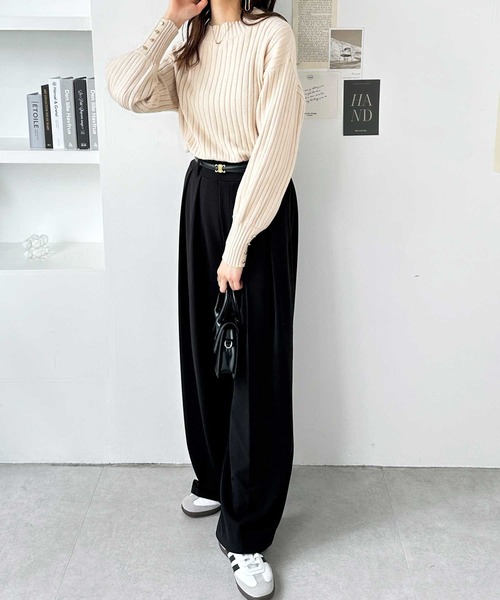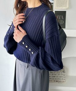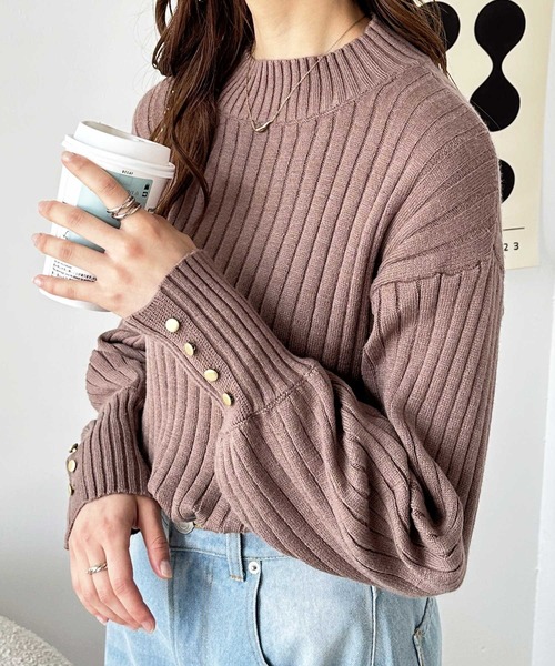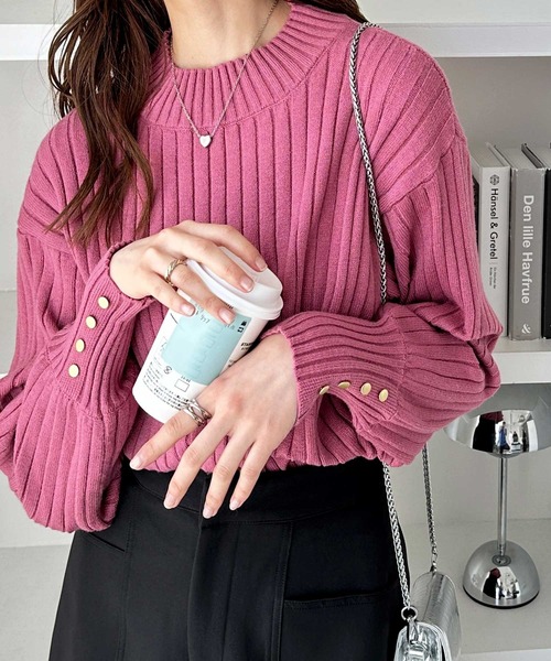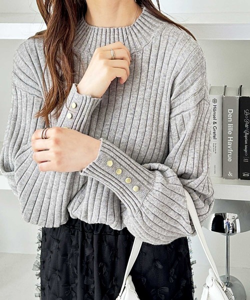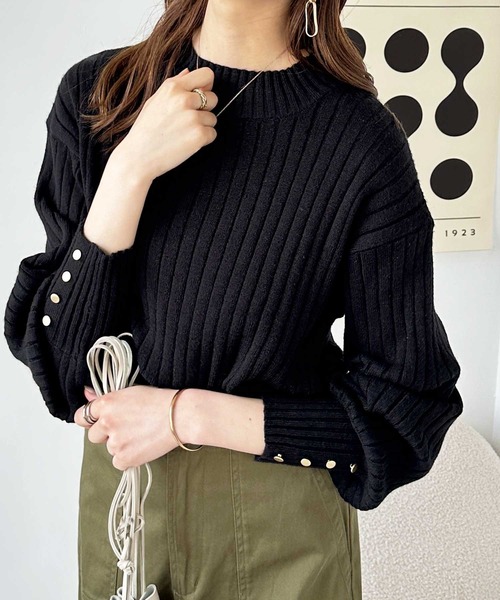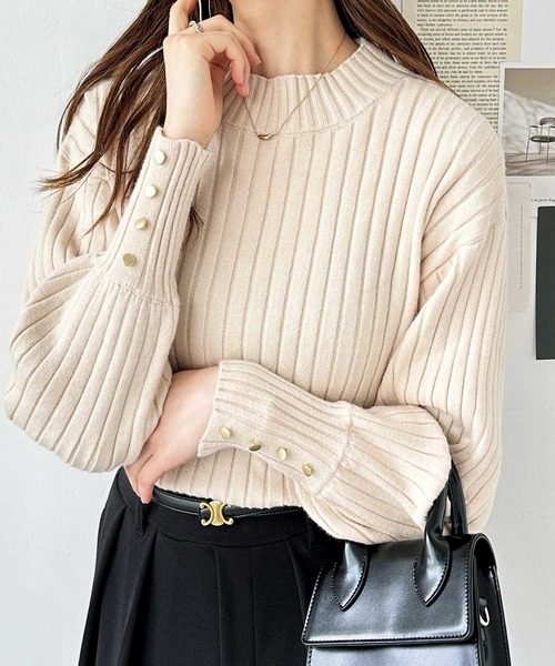 商品名:袖口ボタンパフスリーブボトルネックニット
