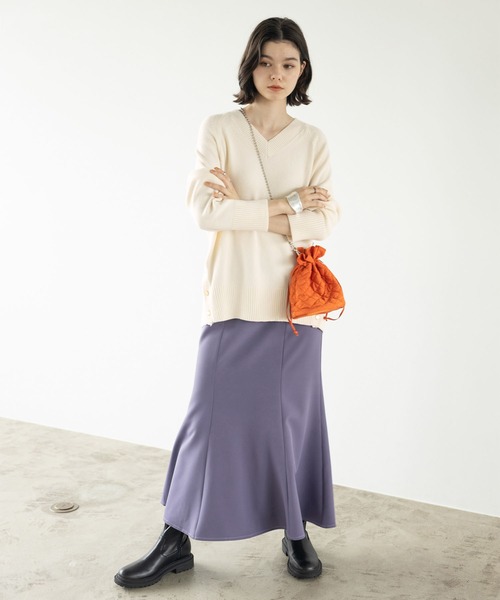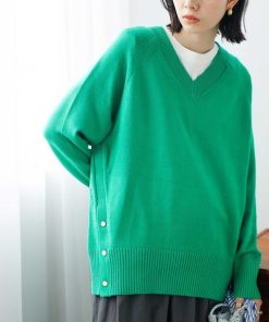 商品名:裾ボタンVネックモチモチニット