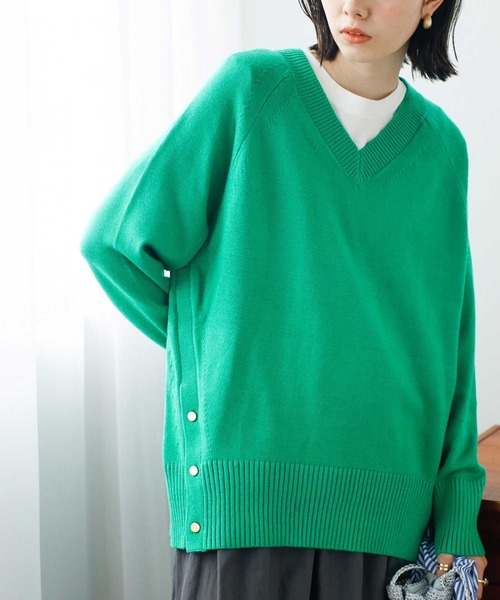 GeeRA ニット セーター 裾ボタンVネックモチモチニット レディース