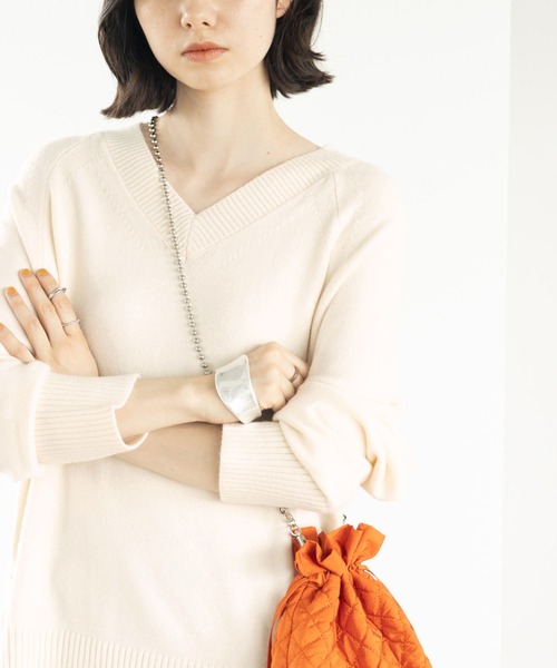 キーワード:ニット セーター レディース vネック ワンポイント 長袖 無地