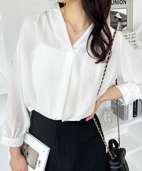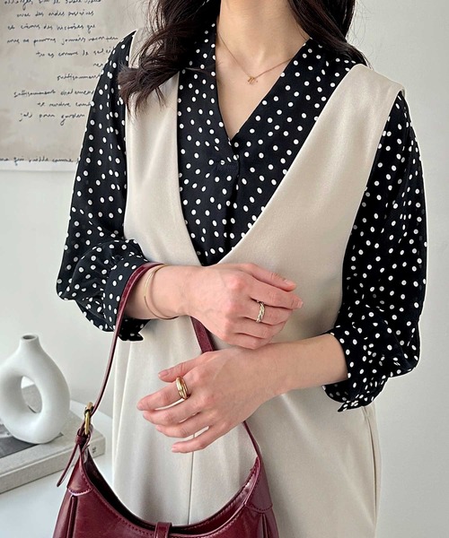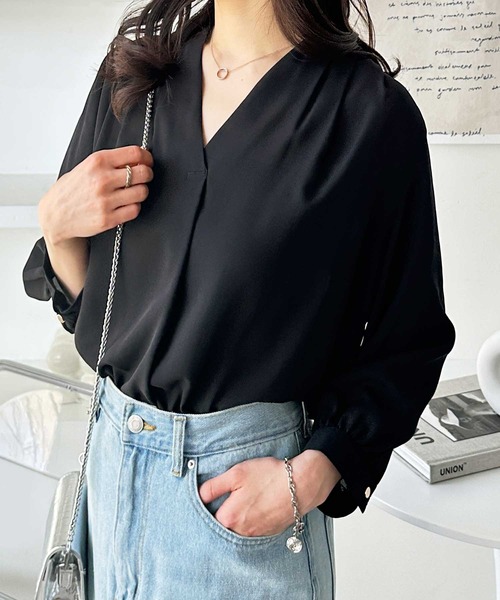 商品名:タックデザインスキッパーブラウス(七分袖)