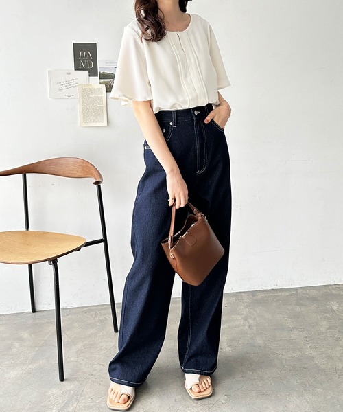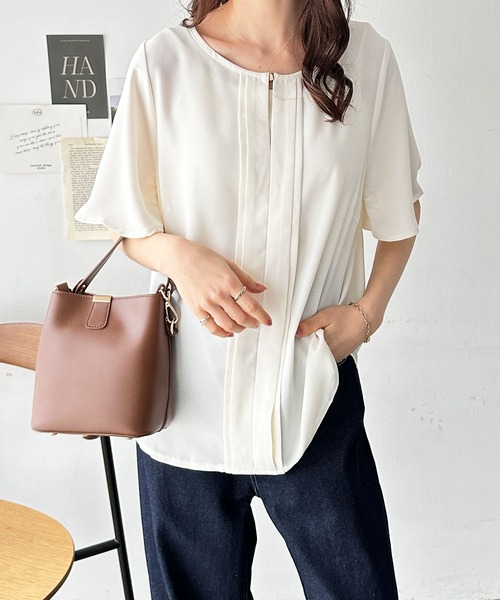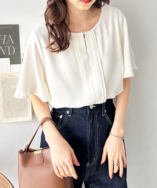 GeeRA ブラウス シャツ フロントタックフレアースリーブブラウス レディース