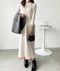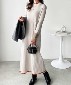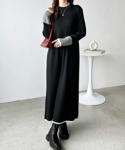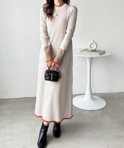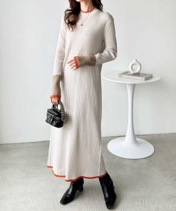 GeeRA ワンピース 全骨格細見え!配色リブニットワンピース