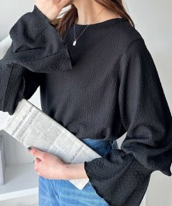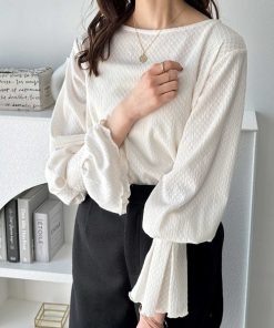 キーワード:tシャツ レディース フリル ボートネック 長袖 無地