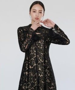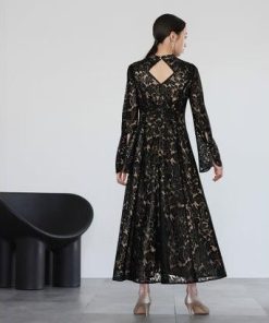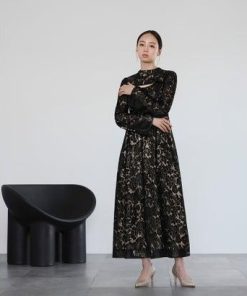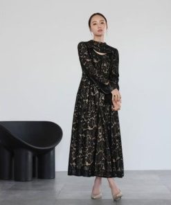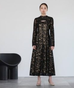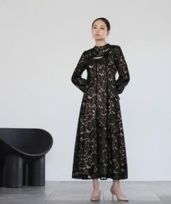 GIRL DRESS FOR NOW ガール スタンドカラー総レースロング丈 結婚式 ワンピース パーティードレス (ブラック)