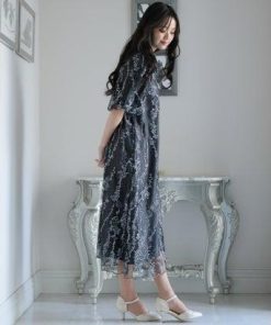 GIRL DRESS FOR NOW ガール ハイネック5分袖総レースミモレ丈結婚式パーティードレス (ライトグリーン)