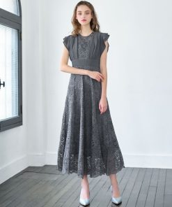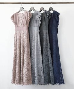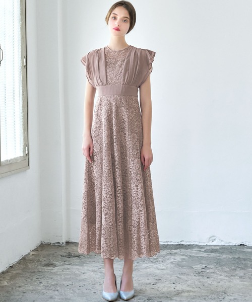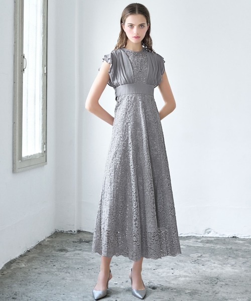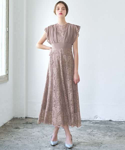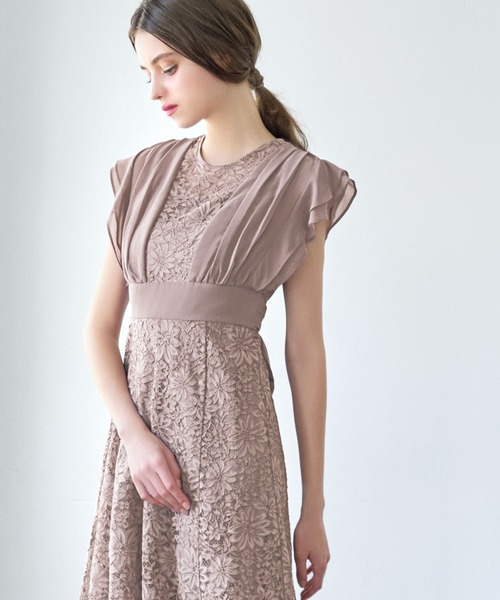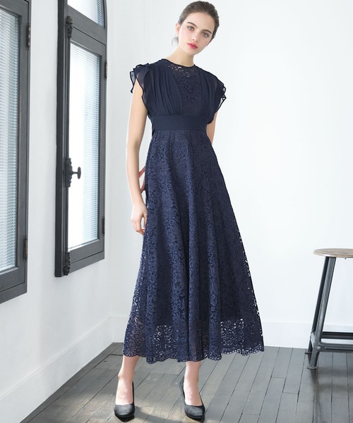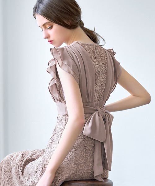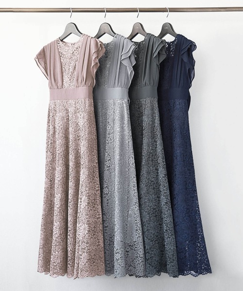 キーワード:ドレス フリル フレア リボン レース ロング 半袖 エレガント オケージョン キレイめ 結婚式二次会 成人式