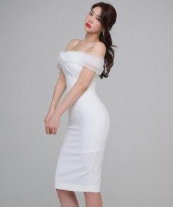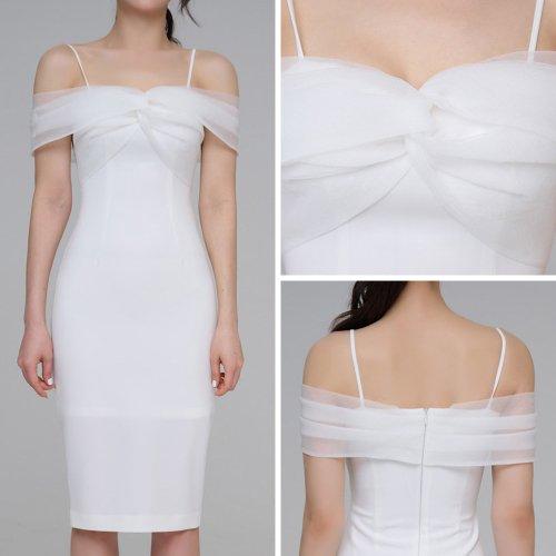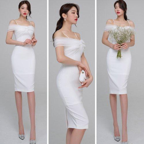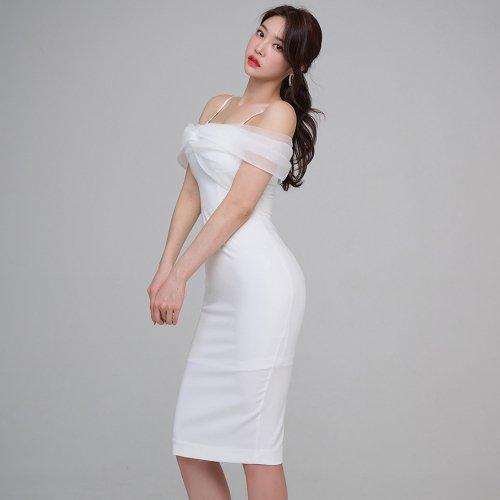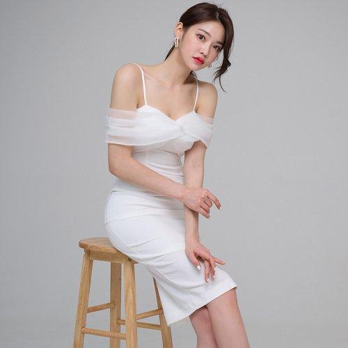 パーティシーンでひときわ映えるオフショルワンピ(キャバドレス・CABARETDRESS)。デコルテをソフトなシフォンでふんわりと覆ったフェミニンなパーティドレス。華奢な肩紐でさらに女性らしいシルエットを印象付けます。スカートは上品な丈感で落ち着きのある雰囲気。華やかなシーンで目を惹きます。