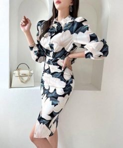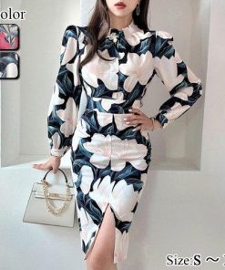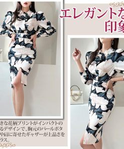 GRAXIA キャバドレス ナイトドレス ミディアムドレス セットアップ ツーピース タイト キャバ嬢 キャバクラ ラウンジ 長袖 花柄 パールボタン レディース グラシア