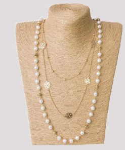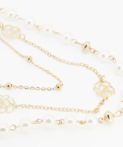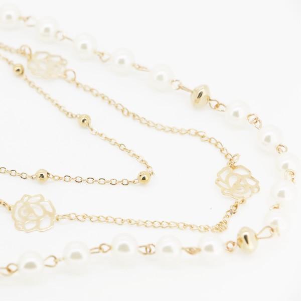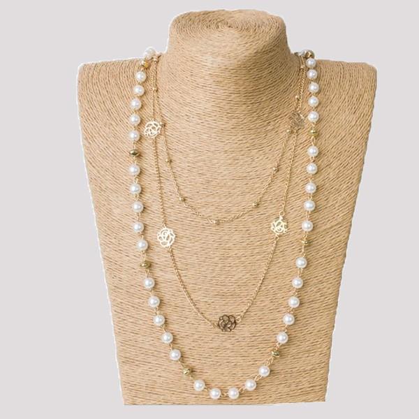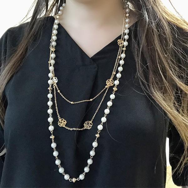 gulamu jewelry 爆買 3連パール ローズ ネックレス エレガント パール ゴールド 上品 小物 ロングネックレス パーティ 二次会 女性 シンプル アクセサリー 結婚式 クラシカル