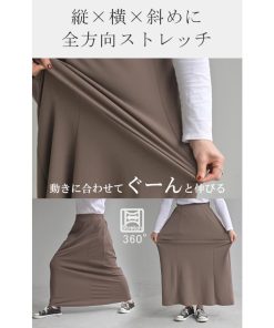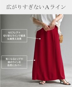 HUG.U スカート ロング ストレッチ Aライン レディース ロングスカート ボトムス ボトム シワになりにくい セミ フレア フレアスカート ウエスト ゴム マキシ