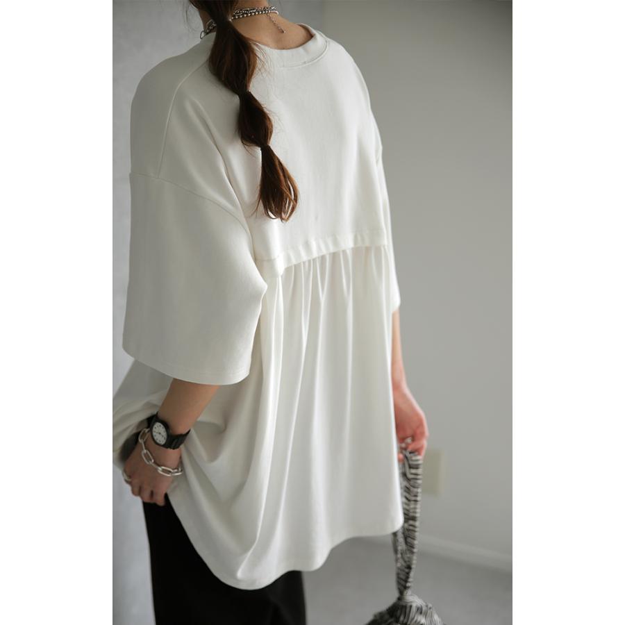 半袖T 半袖Tシャツ 白T カットソー Tシャツ バックギャザー バックプリーツ フリル プリーツ お尻が隠れる コクーン オーバーサイズ 二の腕隠し 二の腕カバー 体型カバー ダイエット こなれ オフィスカジュアル ゆったりサイズ 半袖 無地 ボックスT レイヤード 重ね着 インナー 袖あり U字ネック Uネック 丸首 ロング ミドル トレンド 旬 大きい 大きめ きれいめ 着回し キレイめ プルオーバー 切替 異素材MIX 配色 ドレープ タック 切り替え ミドル丈 ミディアム ドロップショルダー ビッグ ビッグシルエット バックシャン バックコンシャス コットン 綿 リラックス アイボリー ホワイト オフホワイト ベージュ ブラック 白 黒 大きいサイズ 動きやすい 着痩せ 華奢見え 大人カジュアル オトナ 女性 綺麗 高見え 上質 上品 フリーサイズ S M L 2L 3L LL XL XXL 2XL 20代 30代 40代 50代 おしゃれ 春夏 春 夏 秋冬 秋 冬 お洒落 オシャレ かわいい 可愛い カワイイ HUGU ハグユー