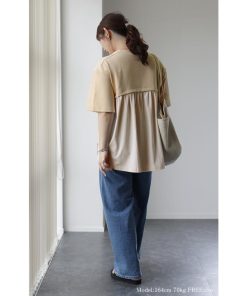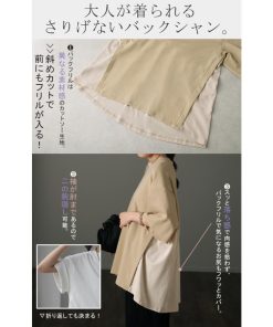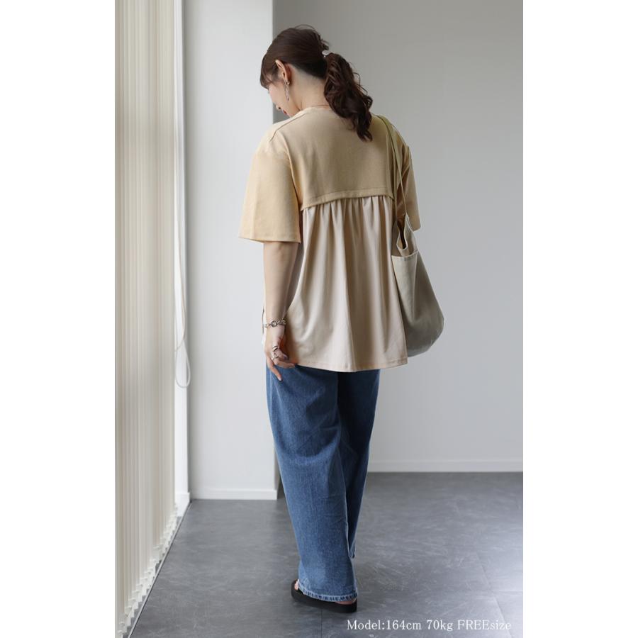 HUG.U トップス Tシャツ レディース バックギャザー カットソー バックフリル 二の腕カバー 半袖 無地