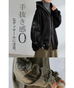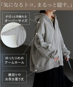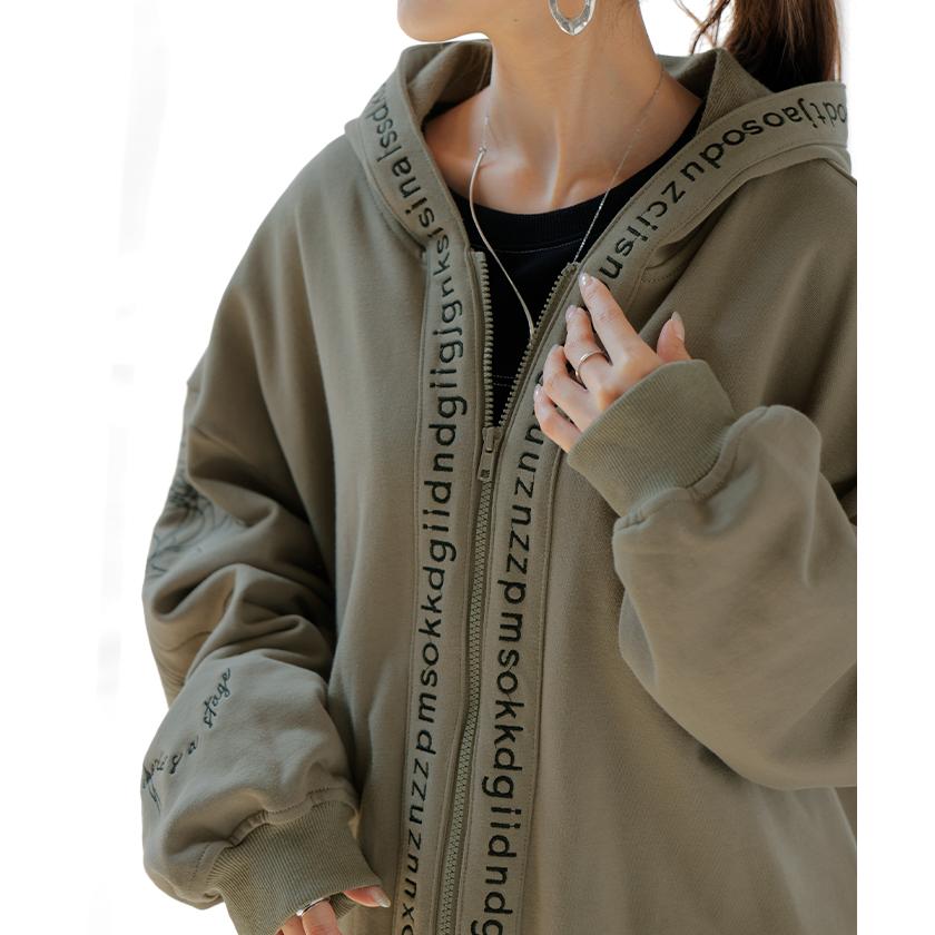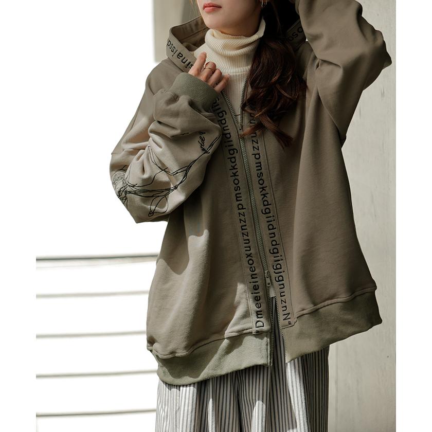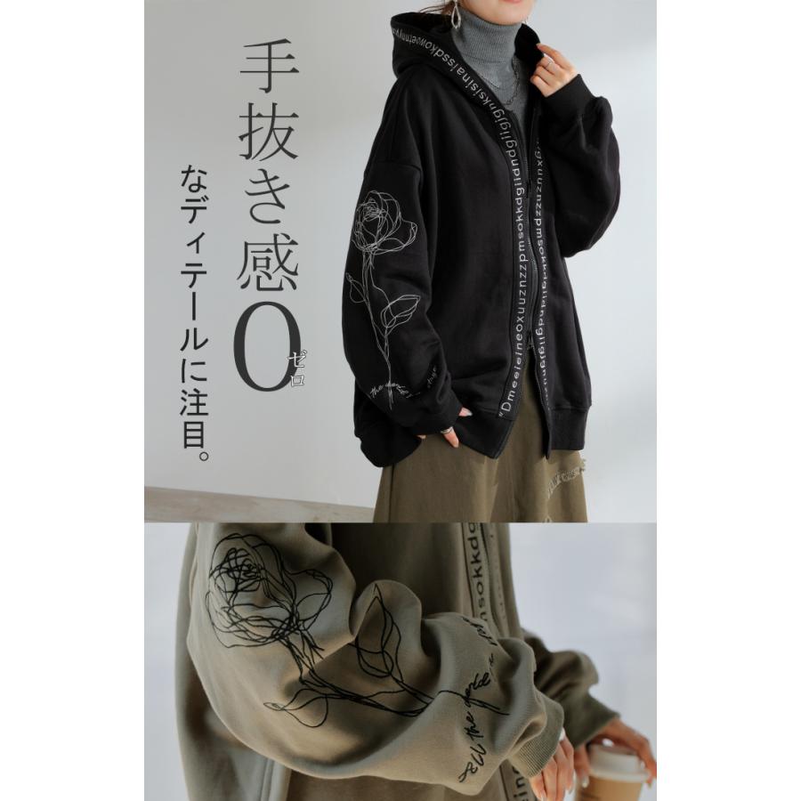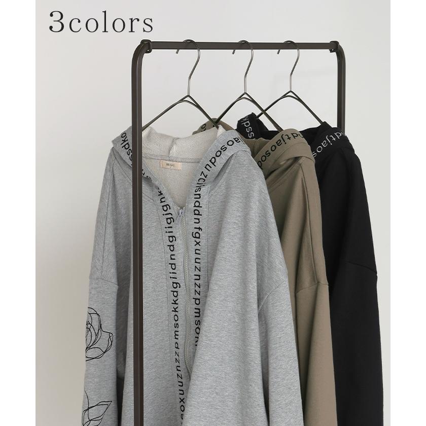 刺繍 パーカー ダブルジップアップパーカースポーティー アウター レディース ライトアウター トップス プルオーバー フード フード付き 帽子 フーディー ビッグ ドルマン ゆったり オーバーサイズ 刺繍 刺繍トップス ロゴ ロゴ入り LOGO 文字 英語 英字 英字ロゴ ワンポイントロゴトップス ロゴ入りトップス アート柄 アート 羽織 羽織り 体型カバー 大きいサイズ リブ リブ裾 リブ袖 ダブルジップ ダブルファスナー 厚手 厚め 厚い スポーティー スポーティ ストリート 黒 ブラック グレー 灰色 カーキ 緑 秋 冬 旬 トレンド カジュアル ベーシック 着回し シンプル 大人 大人カジュアル オトナ 女性 綺麗 きれい キレイめ 高見え 上質 上品 20代 30代 40代 50代 60代 おしゃれ お洒落 オシャレ 春 夏 秋 冬 春夏 秋冬 HUG.U HUGU ハグユー はぐゆー フーディー ドルマン ロゴ 花 綿100% ゆったり オーバーサイズ 体型カバー 大きいサイズ