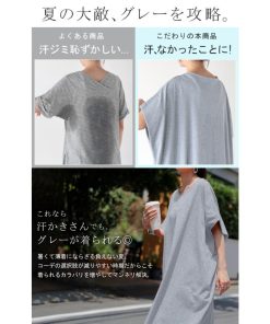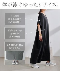 HUG.U ワンピース ロング 半袖 汗ジミ 軽減 UVカット ワンピ 選べる ネック レディース 綿100% ロングワンピース