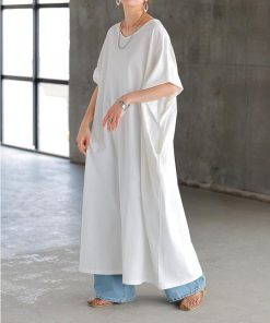 半袖ワンピース 半袖ワンピ ロング丈 ロング丈ワンピース ロング丈ワンピ 綿 綿100 コットン 汗 汗ジミ防止 UV UVケア 紫外線 紫外線対策 日焼け 日焼け対策 日焼け止め 遮へい率 96.6% ホワイト アーバンブルー メランジグレー ダークグレー ブラック ブリックオレンジ 黒色 白色 ブルー 青 青色 グレー 灰色 チャコール オレンジ 橙 橙色 旬 トレンド プラスサイズ ビッグシルエット ビッグ ビック big ビックサイズ ビッグサイズ オーバーサイズ 大きい 大きめ フリーサイズ フリー S M L LL 2L XL 3L XXL LLL カジュアル ベーシック オフィス オフィスカジュアル 着回し シンプル 大人 大人カジュアル オトナ 女性 綺麗 きれい キレイめ きれいめ 高見え 上質 上品 20代 30代 40代 50代 60代 おしゃれ お洒落 オシャレ 春 夏 秋 冬 春夏 秋冬 HUG.U HUGU ハグユー はぐゆー Aライン Uネック Vネック マキシ マキシワンピース ワンピ ロングワンピ 体型カバー 二の腕カバー 大きいサイズ