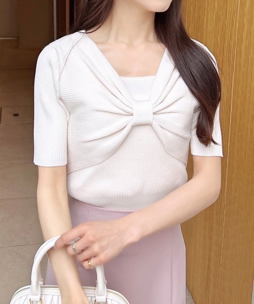 キーワード:ニット セーター レディース リボン キレイめ セクシー デート フェミニン