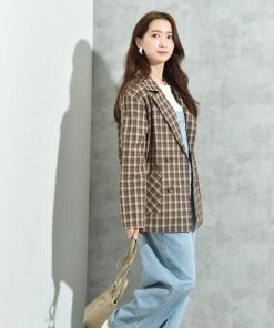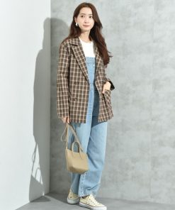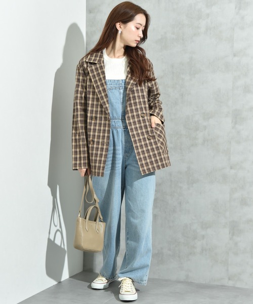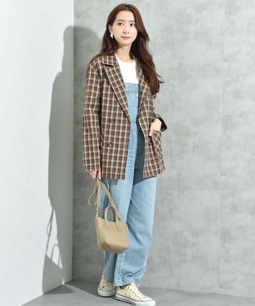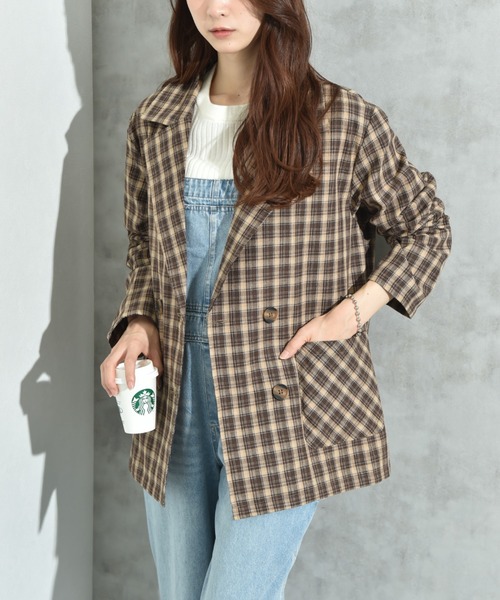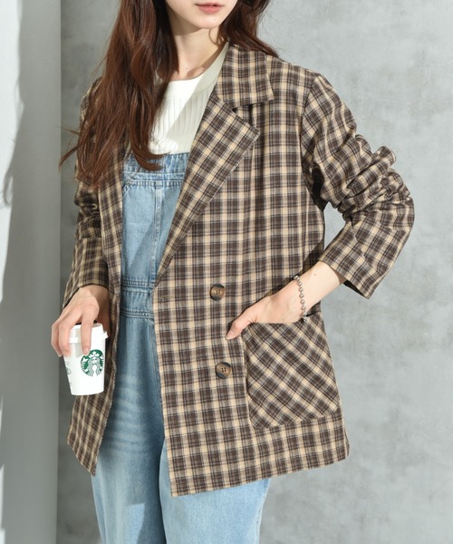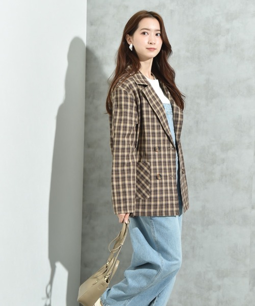 キーワード:ジャケット テーラードジャケット レディース ダブル チェック オフィスカジュアル キレイめ ピクニック レジャー ビジネス 大人カジュアル 旅行