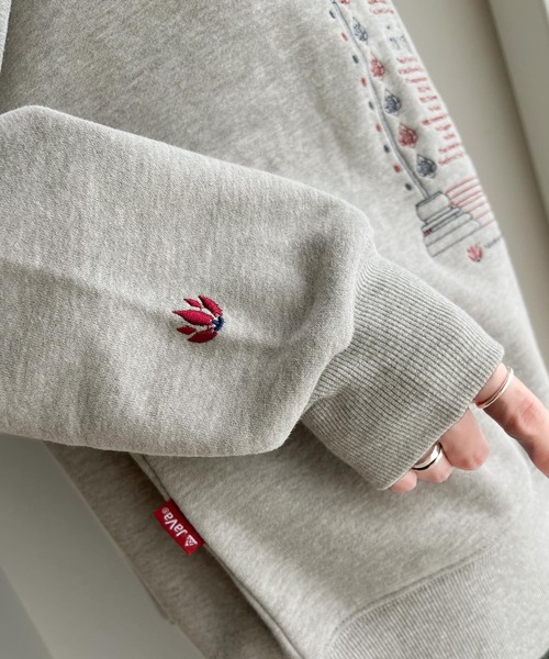 参考商品名:《JaVa ジャバコラボ》エキゾチックな刺繍が個性的。前後2wayタイレシピ刺繍裏起毛スウェットトップス
