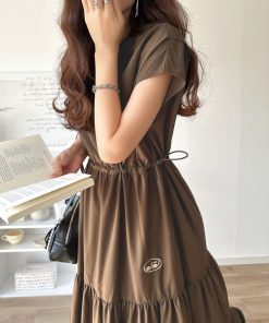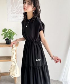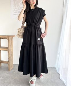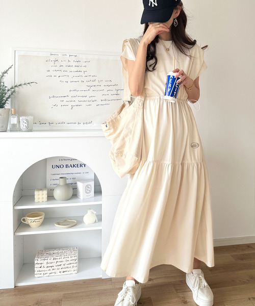 参考商品名:《JaVaジャバコラボ》リラクシーな抜け感♪ロゴ刺繍入りドロスト使いティアードロングワンピース