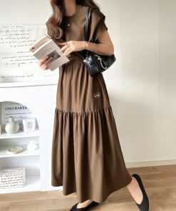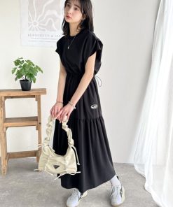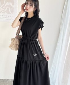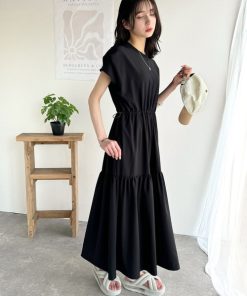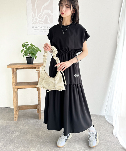 キーワード:ワンピース ティアード ロング 半袖 無地