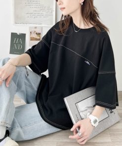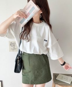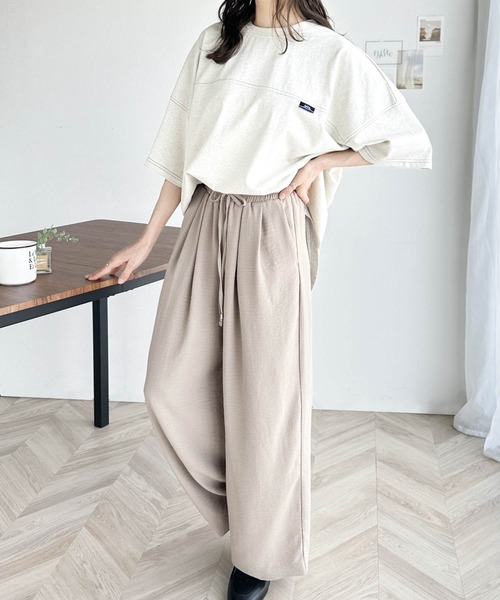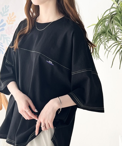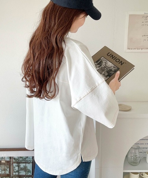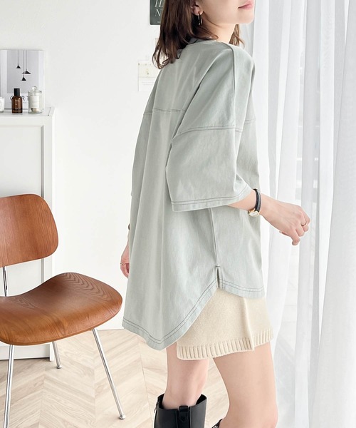 キーワード:tシャツ レディース クルーネック ロング丈 半袖 無地