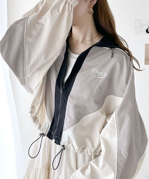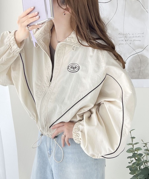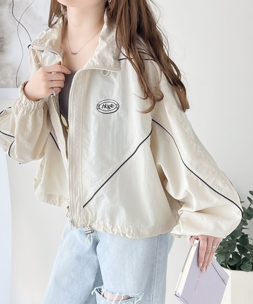 商品名:《Javaジャバコラボ》甘カジュアルを格上げ。配色パイピングナイロンジャケット