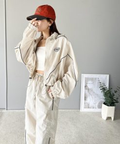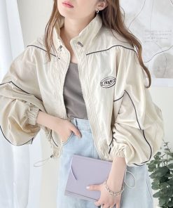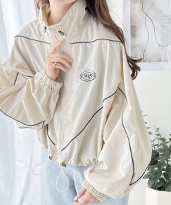 キーワード:ブルゾン ジャンバー レディース ライン ワンポイント 無地 アウトドア ストリート スポーティー ピクニック レジャー ヒップホップ b系 秋 春 新生活 定番 別注 コラボ