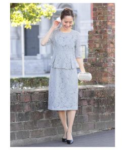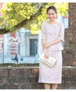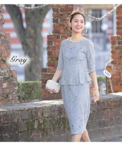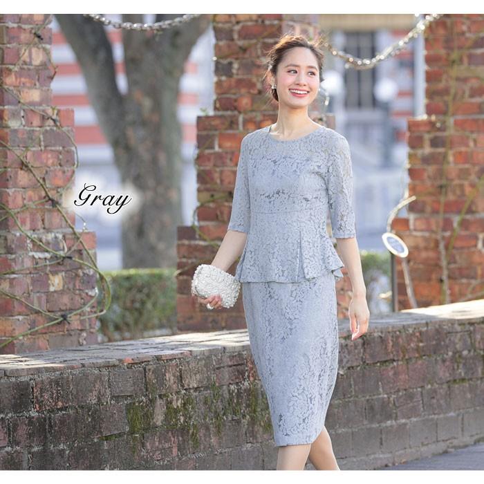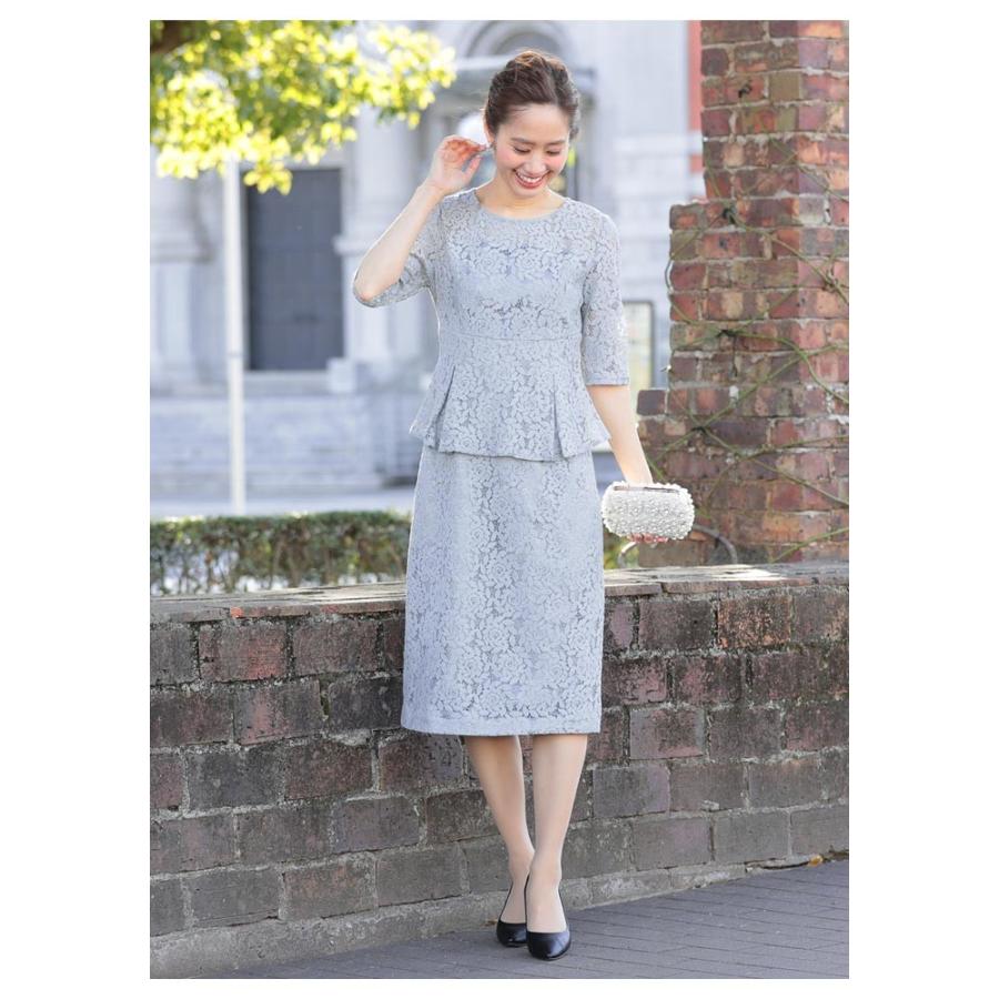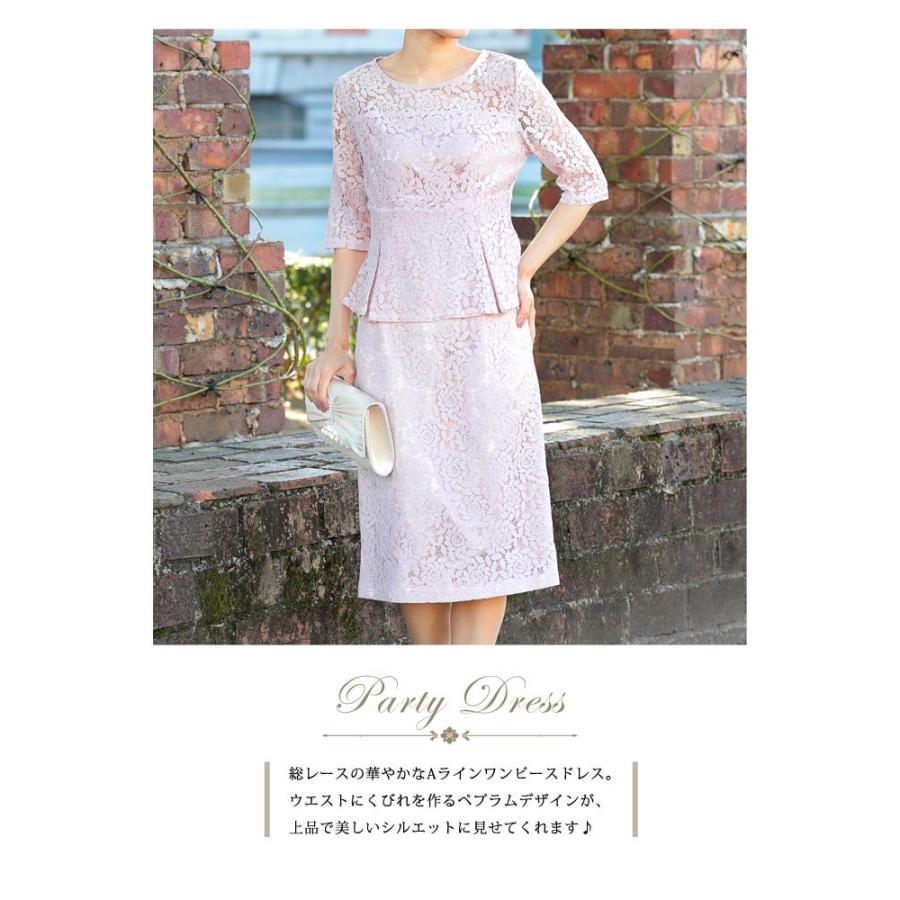総レースペプラムワンピースドレス