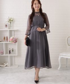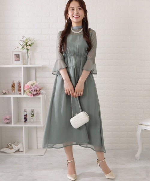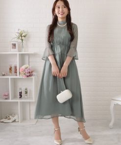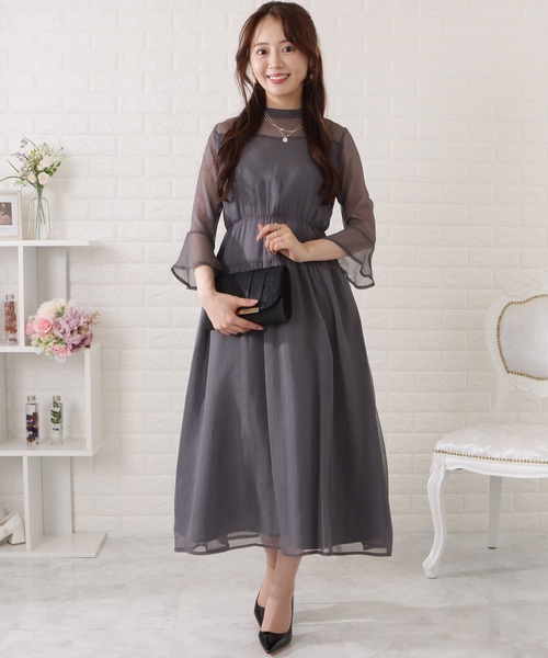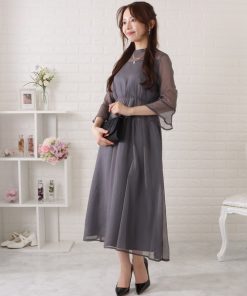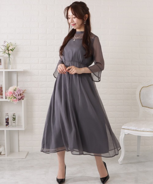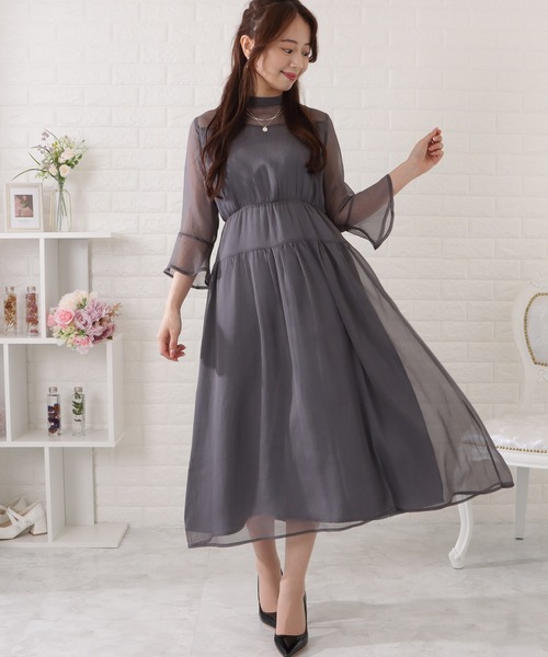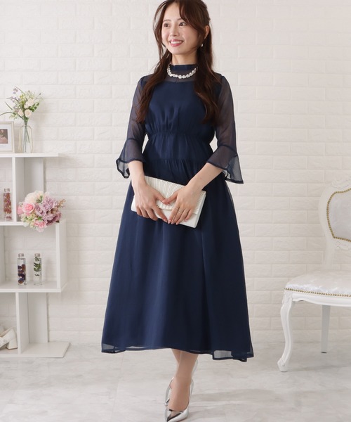 キーワード:ドレス フレア ロング 七分袖 五分袖 無地
